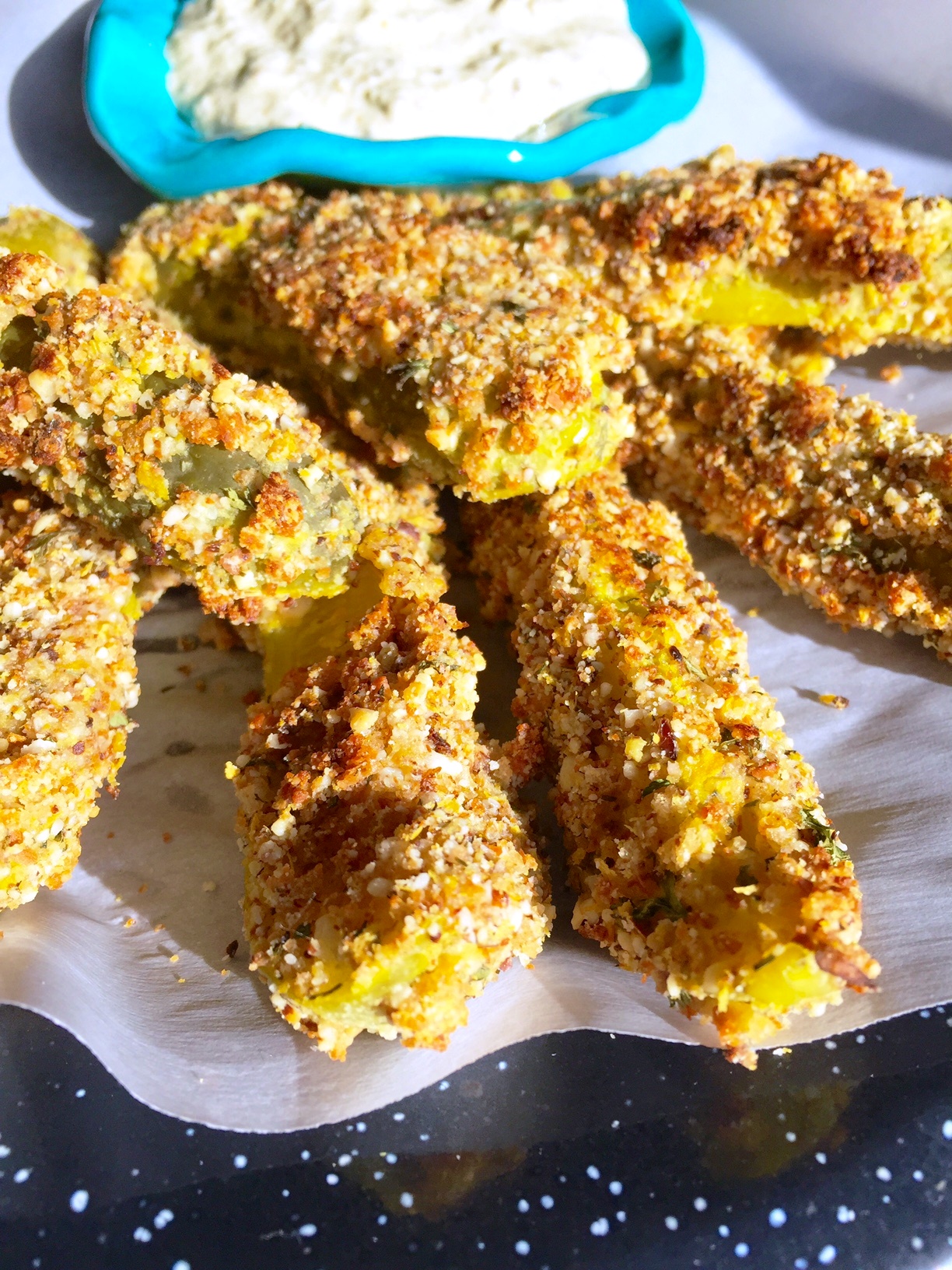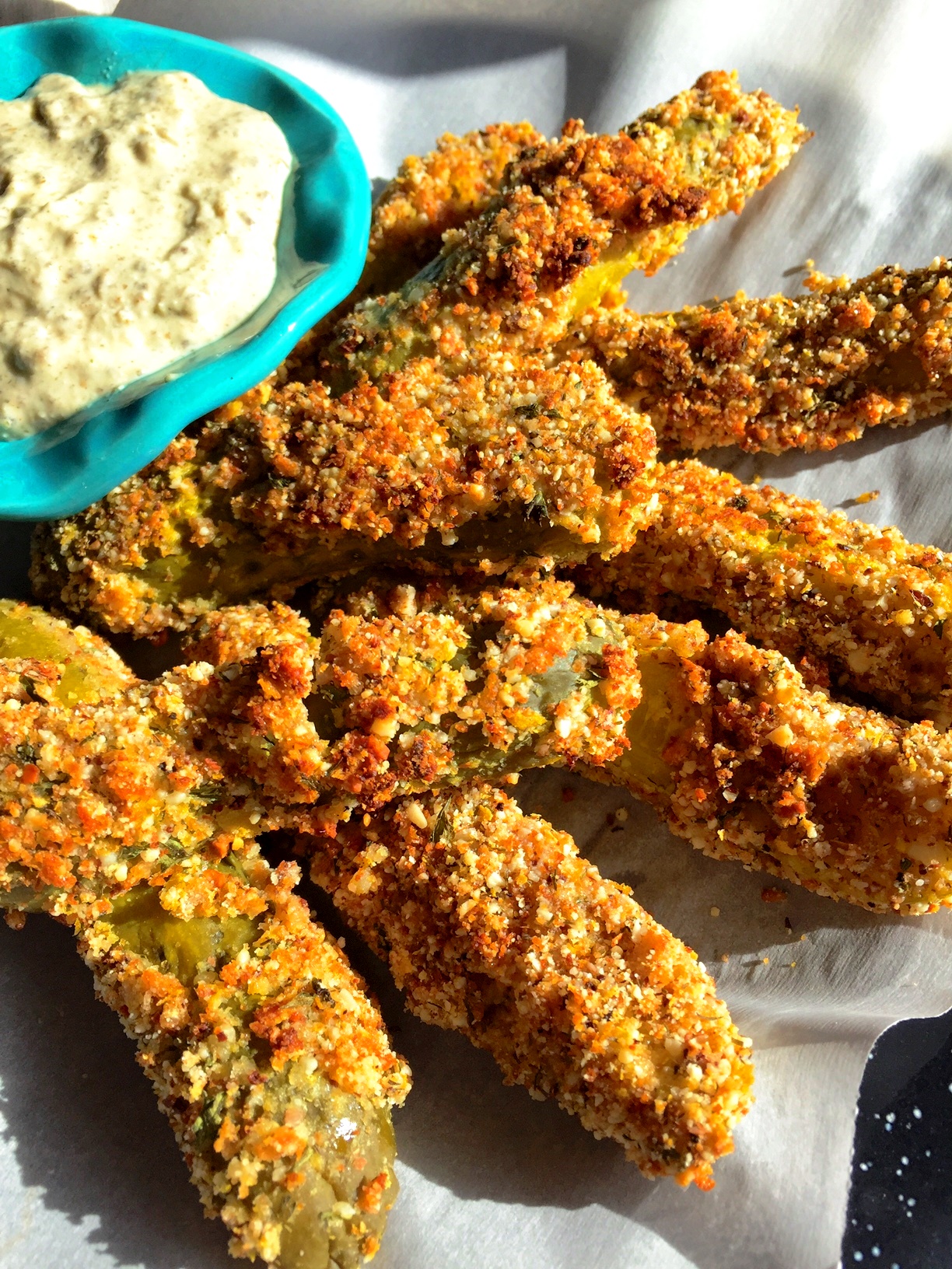 Oven-Fried Pickles (Dairy-free, egg-free, vegan, gluten-free)