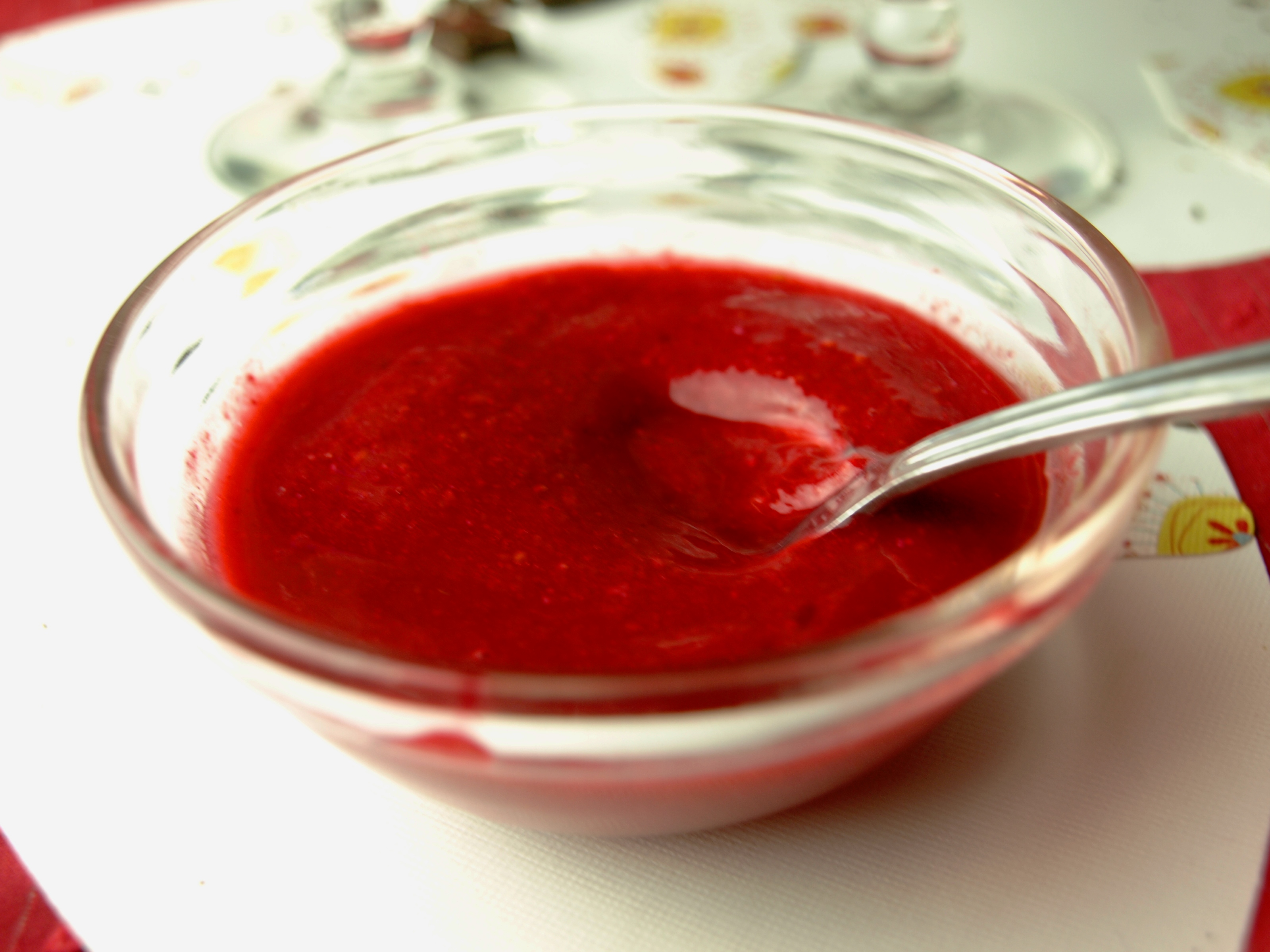 Blend the raspberries with a splash of water (one or two tablespoons) in your blender, until smooth. That’s it! Store in the fridge.
