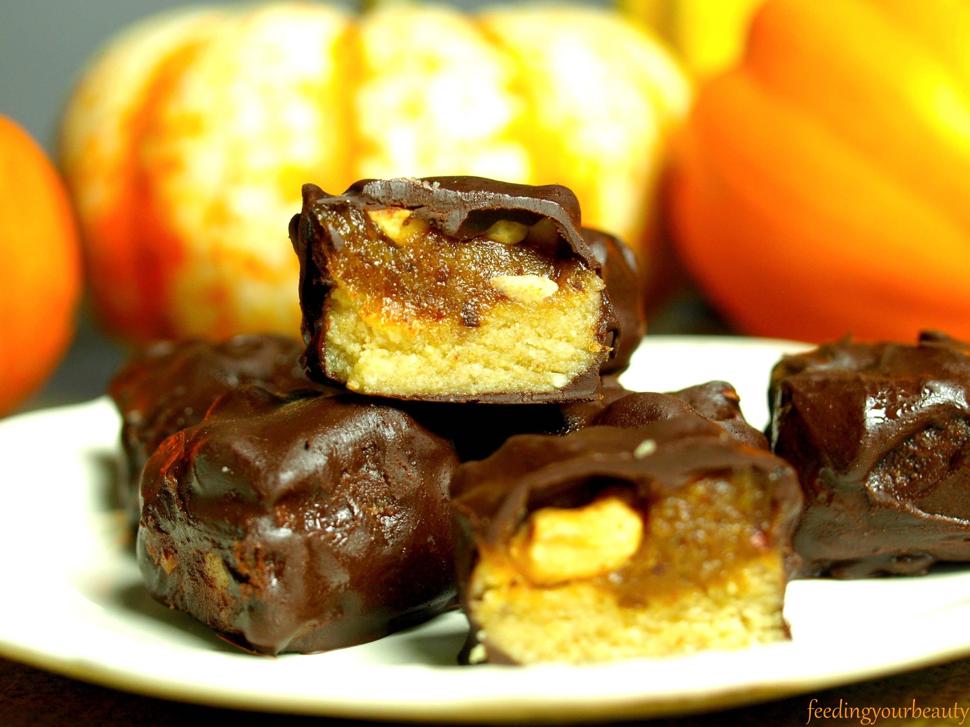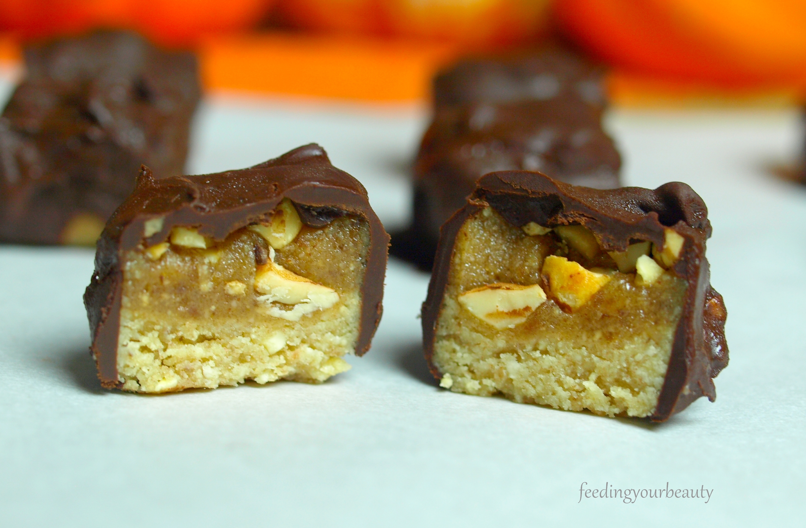 Nothing used to satisfy those trick or treat expectations quite like a bite size candy bar, especially the highly coveted Snickers. At least that was my experience. Even as a young adult I ate my fair share of candy bar miniatures. Unfortunately, they are not vegan friendly. Even if they were, those fake tasting, sugar-on-steroids, dripping with high fructose corn syrup, candy bars don’t even taste that good to me anymore. Once I started making my own treats or buying only high quality vegan dark chocolate, the cheap, conventional counterparts are simply not as tasty.