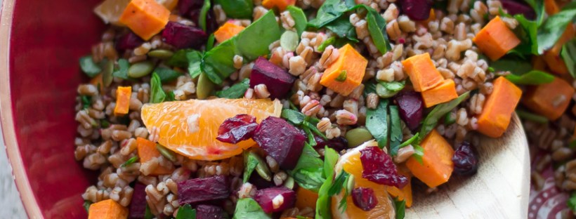 It's that time of year again. Ahhh I love it. Softly falling snow, weekend baking, spiced gingerbread wafting through the air, friends and family gathering for laughs and hugs. It can also be the time of year when the most colorful thing on your plate are the red and green sprinkles on your sugar cookies. … Continue reading Winter Wheat Berry Salad